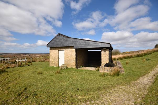 Approximately 10 m from the paddock is a solid smaller building, the water house. With thick natural stone-clad walls and a natural slate roof, it is currently used to store saddles and equipment. Directly beside it is a covered multi-purpose work area, protected by side walls.