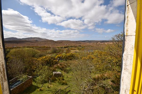 The hobby farm at Meecorwick is surrounded by moutains with Lough Keel and the Owenator River.